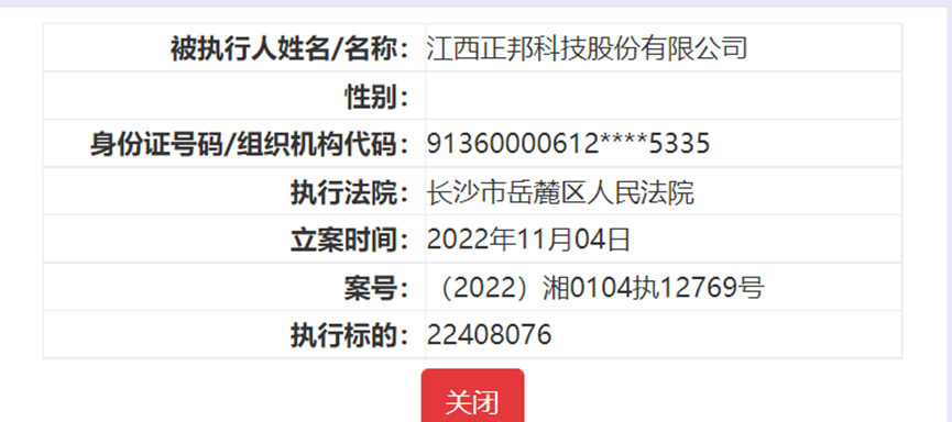 據中國執行信息公開網數據,近日,正邦科技再次成被執行人。案號為(2022)湘0104執12769號的記錄顯示,立案時間為2022年11月04日,執行法院為長沙市岳麓區人民法院,被執行人名稱為江西正邦科技股份有限公司,執行標的為22408076元。執行信息公開網還顯示,截至發文,正邦科技存在數十條被執行人記錄。