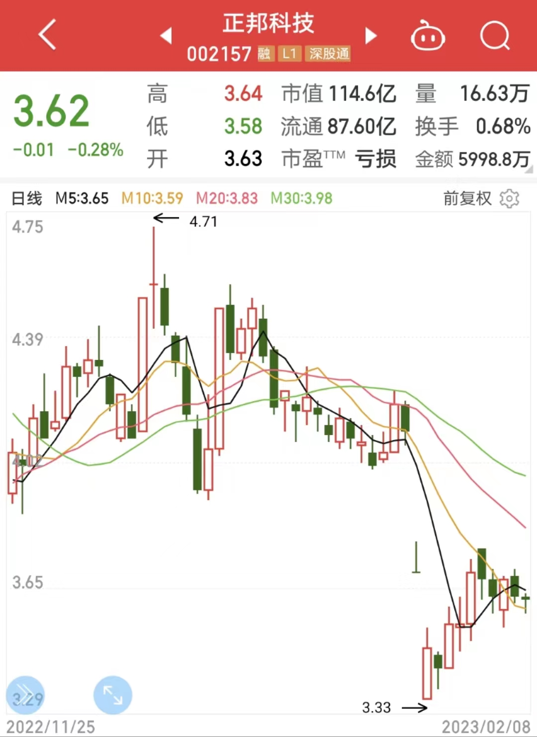 截至2月7日收盤,正邦科技報3.63元/股,跌1.36%。自2022年10月25日公布被預重整消息后,公司股價下跌了21.42%。