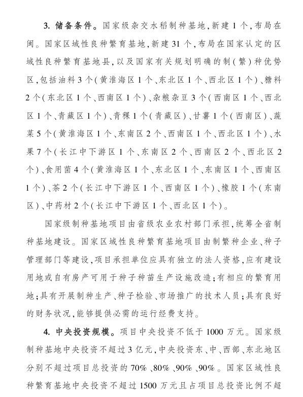 (四)農作物良種繁育能力提升項目,中央財政支持:1000-1500萬;
