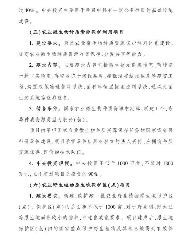 (五)農業微生物種質資源保護利用項目,中央財政支持:1000-1800萬;