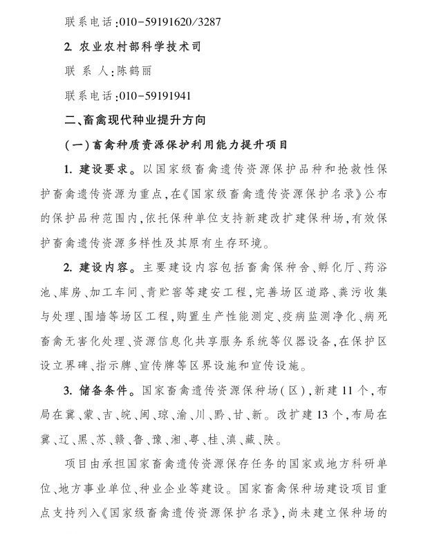 (一)畜禽種質資源保護利用能力提升項目,中央財政支持:1000-1500萬;
