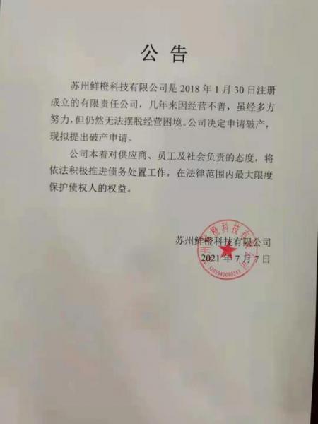 農(nóng)業(yè)行業(yè)觀察|剛剛,社區(qū)團(tuán)購(gòu)品牌同程生活運(yùn)營(yíng)主體蘇州鮮橙科技有限公司,在其官方微信公號(hào)發(fā)布公告,因經(jīng)營(yíng)不善,多方努力后仍然無(wú)法擺脫經(jīng)營(yíng)困境,公司決定申請(qǐng)破產(chǎn),現(xiàn)擬申請(qǐng)破產(chǎn)。