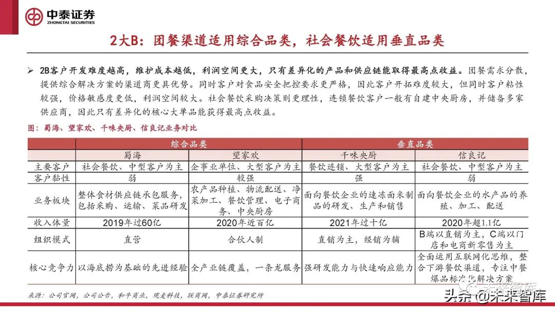 2大B:團餐渠道適用綜合品類,社會餐飲適用垂直品類