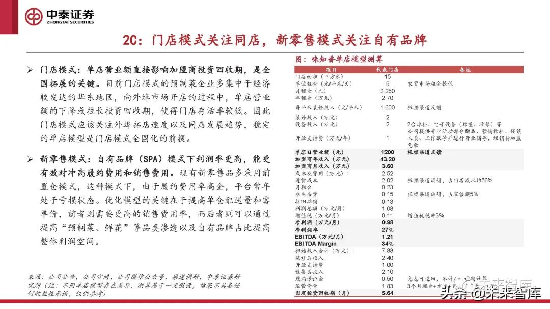 C端預制菜:傳統意義上的快消品,主要有線上新零售模式和線下門店模式,需要承擔消費者教育成本。