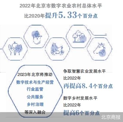 日前,由北京市農業農村局、市委網信辦聯合召集的北京市數字農業農村工作部署會(以下簡稱“部署會”)召開,會上提出,2023年北京將推動數字技術與生產經營、行業監管、公共服務、鄉村治理等深入融合,爭取智慧農業發展水平比2022年再提高8.4個百分點,數字鄉村發展水平比去年提高6個百分點。