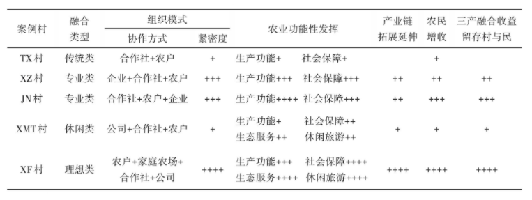 表1 案例村產業融合現狀