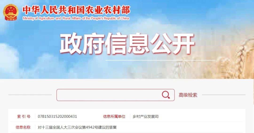 農業農村部官網上公布了對十三屆全國人大三次會議第4942號建議“關于優化休閑農業、鄉村旅游用地政策,助力鄉村振興的建議”的答復。
