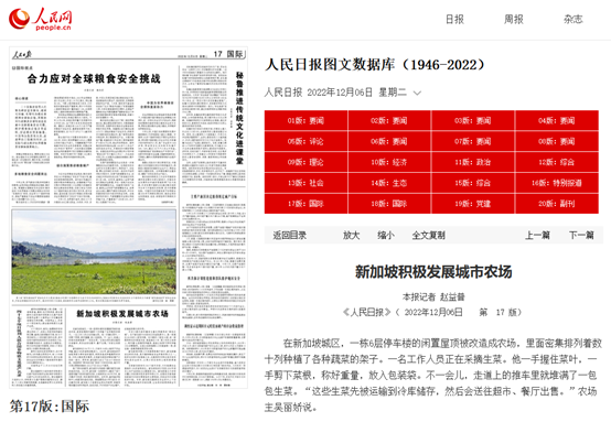 目前新加坡有約240個城市農場,大約能滿足全國每年10%的食物供應。新加坡政府計劃到2030年將本土農產品供給占比提高到30%。新加坡國立大學李光耀公共政策學院學者阿科特認為,運營成本高是新加坡城市農場發展面臨的主要挑戰,農場運作仍依賴政府補貼。未來,新加坡應繼續在農業技術上下功夫,持續推動城市農場發展,讓各類農場更具商業可行性。