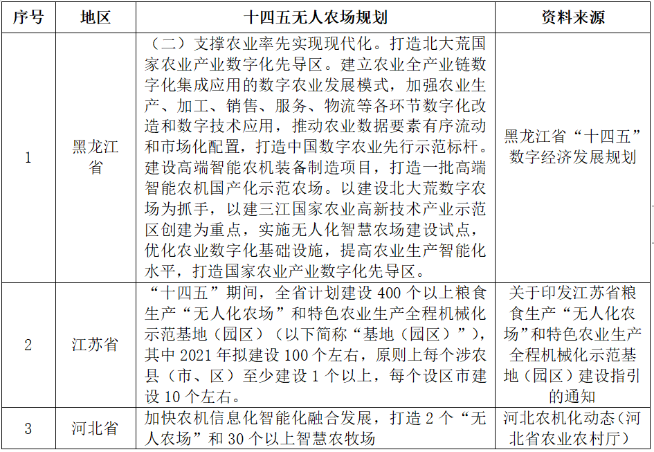 表1 十四五無人農場規劃