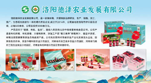洛陽德澤農業發展有限公司位于河南省洛陽市伊川縣的洛陽德澤農業發展有限公司,是一家有機樹莓種植、加工與銷售的現代農業企業,是“國家級生態農場”和“河南省農業產業化重點龍頭企業”。其有機樹莓認證面積167畝,實行“有機種植+生態旅游+深加工”三產融合模式,年產樹莓約300噸,有機種植區總產值約2000萬元。多次參加有機食品博覽會,進一步提升在全國影響力和知名度,推動樹莓成為洛陽特色農業產業的一張亮麗名片,積極助力鄉村振興。