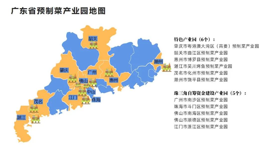 本次公布的廣東省首批預制菜省級現代農業產業園共11個,分別是:韶關市曲江區預制菜產業園、惠州市博羅縣預制菜產業園、湛江市吳川烤魚預制菜產業園、茂名市化州市預制菜產業園、肇慶市粵港澳大灣區(高要)預制菜產業園、潮州市饒平縣預制菜產業園、廣州市南沙區預制菜產業園、珠海市斗門區預制菜產業園、珠海市斗門區現代糧食產業園、佛山市南海區預制菜產業園、佛山市順德區預制菜產業園、江門市蓬江區預制菜產業園。