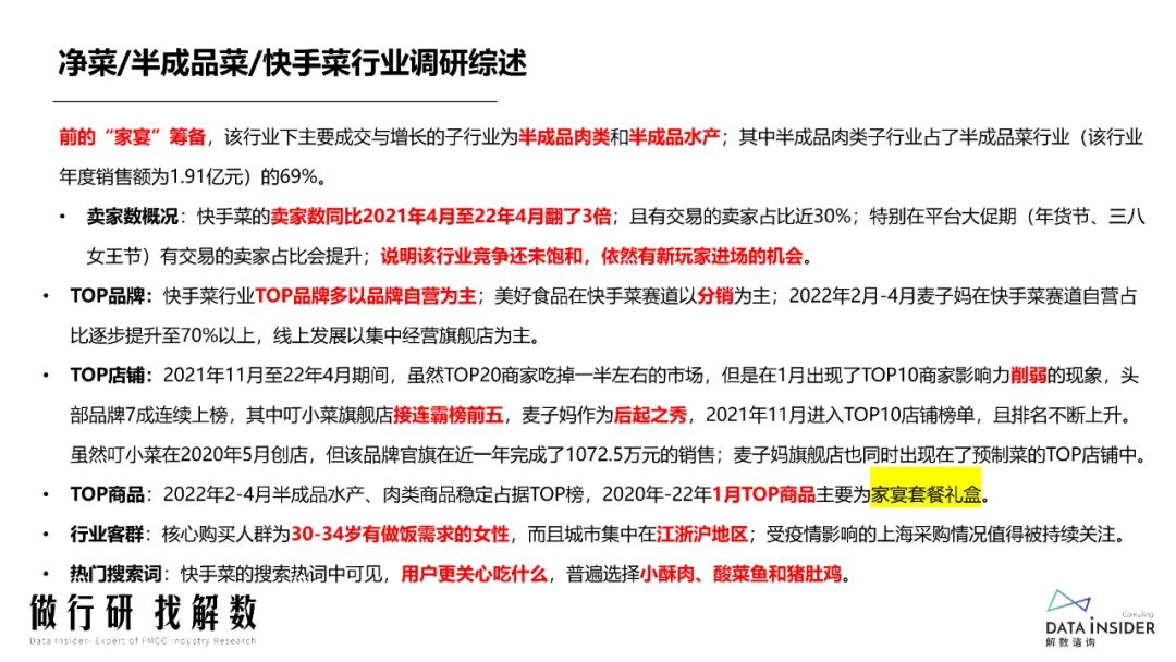 快手菜顧名思義就是上手快,出菜快,不費時的菜品,也可以稱為預制菜。近幾年,特別是疫情以來,國內半成品菜市場火熱,快手菜迎來新增長契機。本期小編為大家整理了來自解數咨詢的"快手菜行業調研",供大家分享學習。