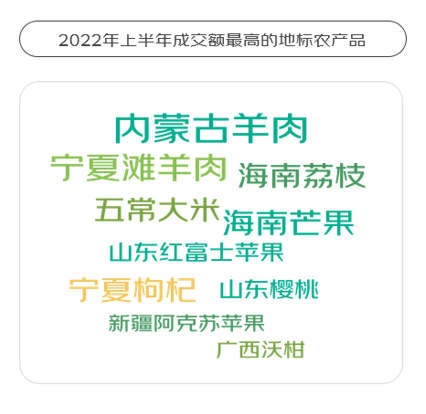 內蒙古羊肉、寧夏灘羊肉、海南荔枝是2022年上半年成交額最高的地標農產品。