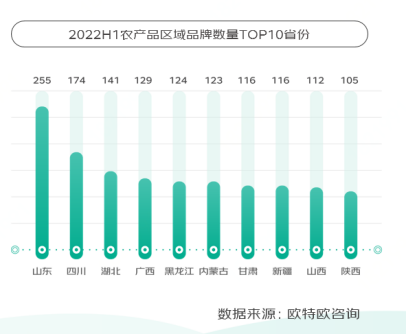 2022上半年,山東省的地標農產品品牌數量最高,其次是四川、湖北、廣西、黑龍江。