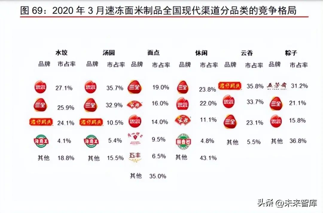 KA 渠道:包括沃爾瑪、永輝等大型超市,渠道覆蓋面較廣,但渠道議價能力較強且 較為集中,品牌方處于弱勢地位,面臨較高進場費、條碼費等費用,構(gòu)建渠道壁壘難 度較高,同時 KA 渠道面臨來客量下滑壓力,代表企業(yè)為三全食品等。