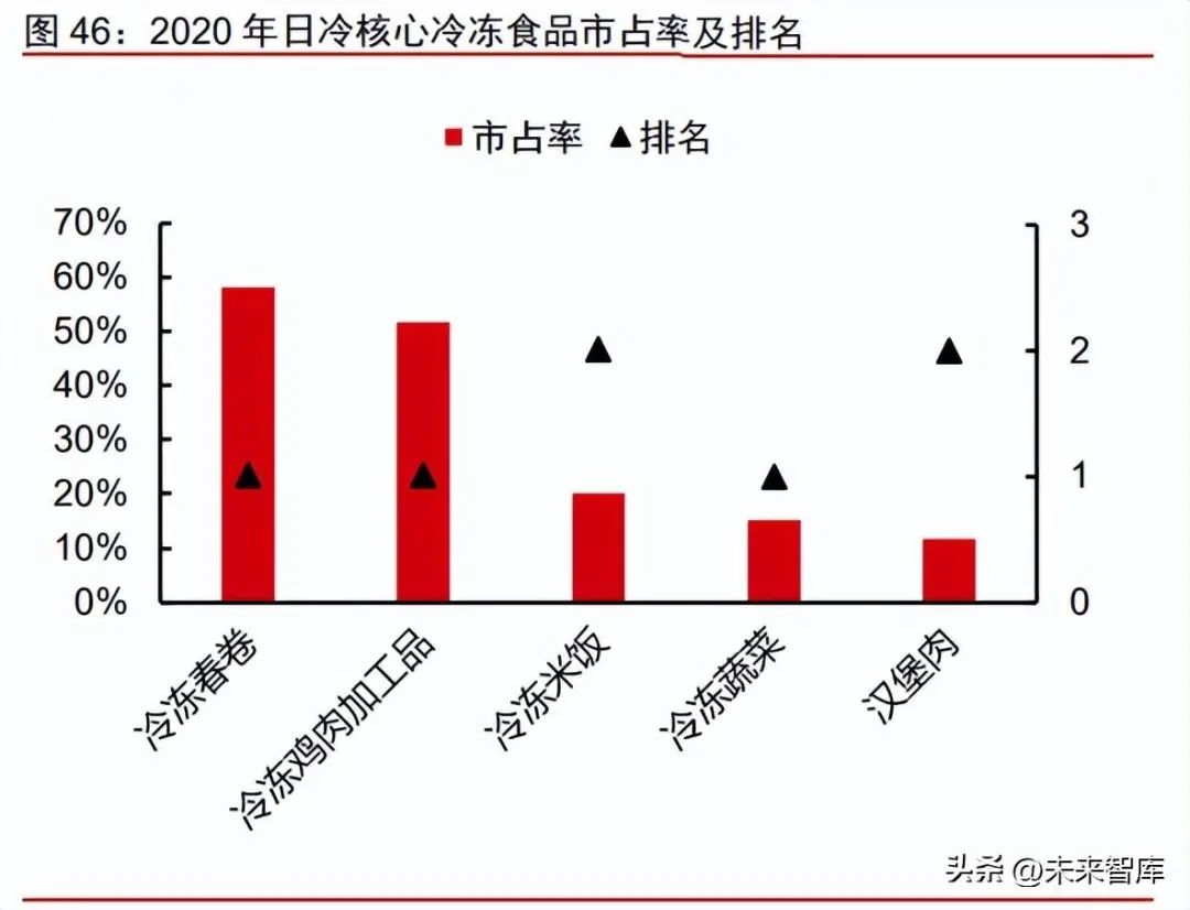 緊密跟隨市場變化推陳出新,產(chǎn)品高度契合市場需求。日冷曾于 1954 年推出日本第 一款冷凍調(diào)理食品-茶碗蒸(蒸熟即食),隨后 1955 年推出了以鱈魚、鮭魚、魷魚等為原 料制成的三色棒,主要針服務(wù)于學(xué)校供膳計劃。上世紀(jì) 70 年代初,隨著家庭端冰箱不斷 普及,日冷相繼推出炸土豆餅、炸蝦等五大人氣品類。隨后由于競爭者大量加入,行業(yè)普 遍陷入低價競爭和虧損。日冷通過與帝國飯店共同出資成立帝國廚房打造高端化產(chǎn)品實行 差異化競爭,推出面向餐飲端的“餐飲系列”和家庭端的“白色包裝”系列。80 年代后, 《男女雇傭平等法》促進女性就業(yè)率提升,公司推出 24 小時系列及便當(dāng)系列。90 年代后, 隨著微波爐基本完成普及,公司推出僅用微波爐加熱即食的炸肉餅、牛肉丸子、春卷等產(chǎn) 品,解決了傳統(tǒng)產(chǎn)品需要油炸的痛點。