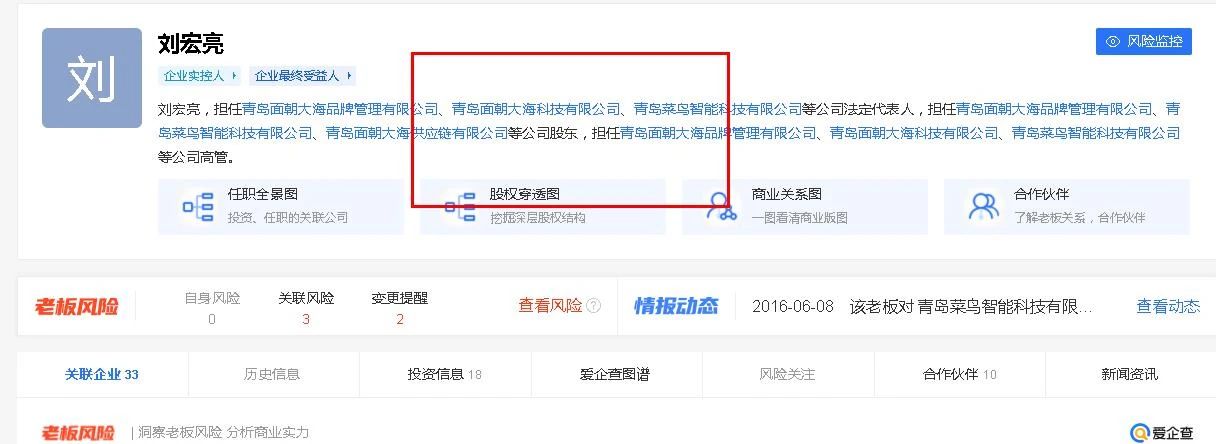 仔細(xì)查了下資料,預(yù)制菜品牌“面朝大海”即為青島面朝大海品牌管理有限公司、青島面朝大海科技有限公司所持有,其創(chuàng)始人劉宏亮還是多家公司法人代表。