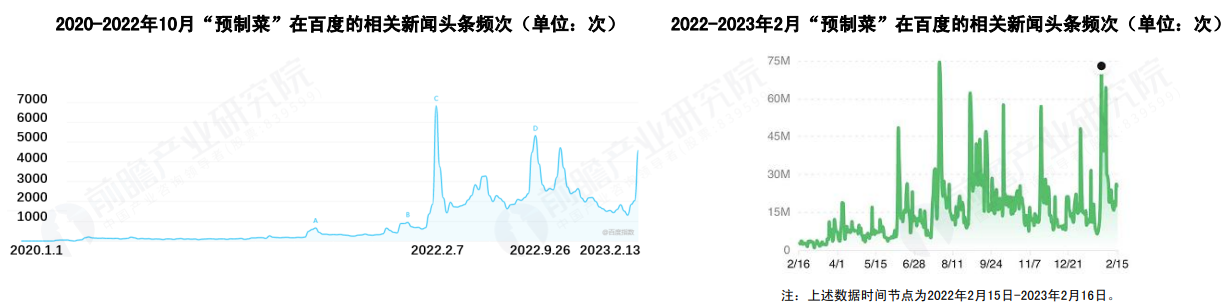 近1年來,“預制菜”這一概念在全國各地熱度不斷升高,雖從國家政策的角度來看,2016年國家就已經開始推動預制菜產業的發展,但預制菜在輿論討論度并沒有跟上,餐飲及食品企業默默地在預制菜產業上發展并不斷有新鮮血液進軍預制菜產業,直至2021年底-2022年年初時,“預制菜”一詞在輿論 中突出重圍。根據百度指數,2020-2021年底,“預制菜”一詞出現在百度的相關新聞頭條的頻次基本處于較低水平,普遍在200次以下,在2021年5月23日前后關注度有小幅度增長。在2021年年末這段時間內,“預制菜”的熱度開始增長。不僅如此,根據微信指數,自2022年6月前后的時間,預制菜一詞在微信出現的頻率逐漸走高,表明居民對“預制菜”一詞的好奇程度較高,并帶動居民嘗試的欲望。