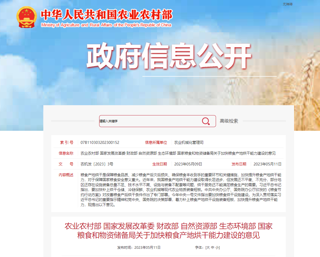糧食產地烘干是保障糧食品質、減少糧食產后災后損失、確保糧食豐收到手的重要環節和關鍵措施,加快提升糧食產地烘干能力,對于保障國家糧食安全意義重大。近年來,我國糧食產地烘干能力建設取得長足進步,但發展還不平衡、不充分,部分地區還存在設施裝備總量不足、技術水平不高、設施與裝備不配套等問題,烘干服務還不能滿足糧食生產的需要。習近平總書記指出,要加快補上烘干倉儲、冷鏈保鮮、農業機械等現代農業物質裝備短板。中共中央辦公廳、國務院辦公廳印發的《糧食節約行動方案》對改善糧食產后烘干條件作出了專門部署。今年中央一號文件指出要加快糧食烘干設施建設。為深入貫徹落實習近平總書記的重要指示精神和黨中央、國務院的決策部署,著力補上糧食產地烘干設施裝備短板,加快提升糧食產地烘干能力,現提出以下意見。