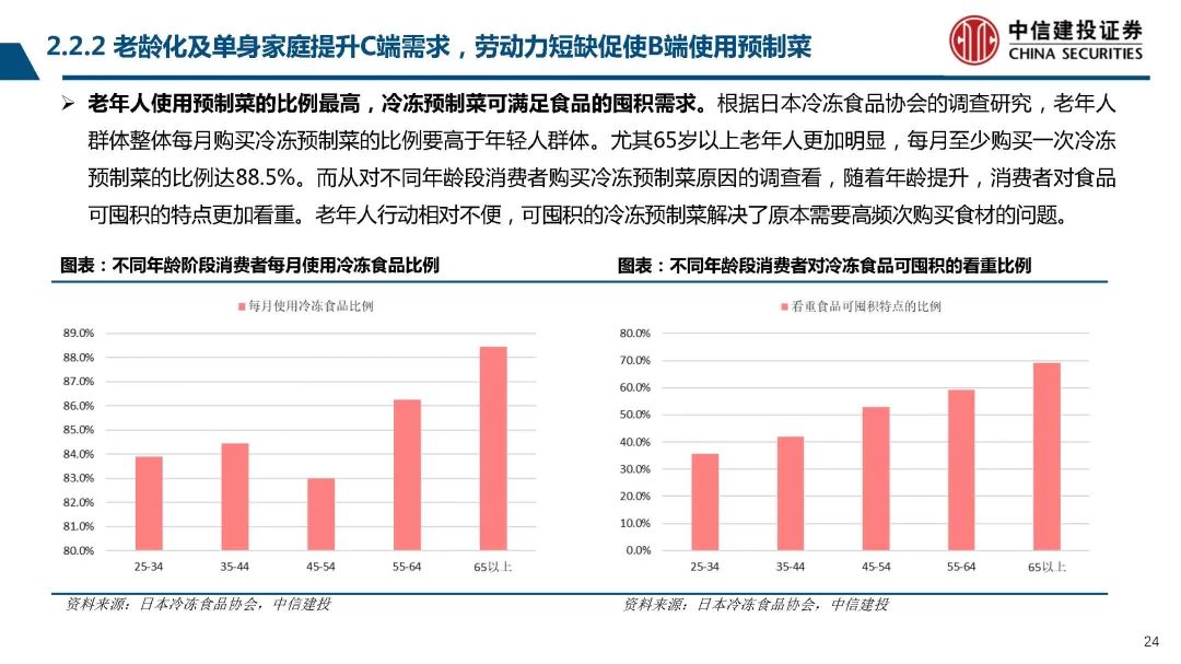 老齡化及單身家庭提升C端需求,勞動力短缺促使B端使用預(yù)制菜