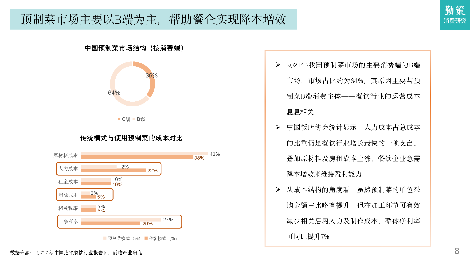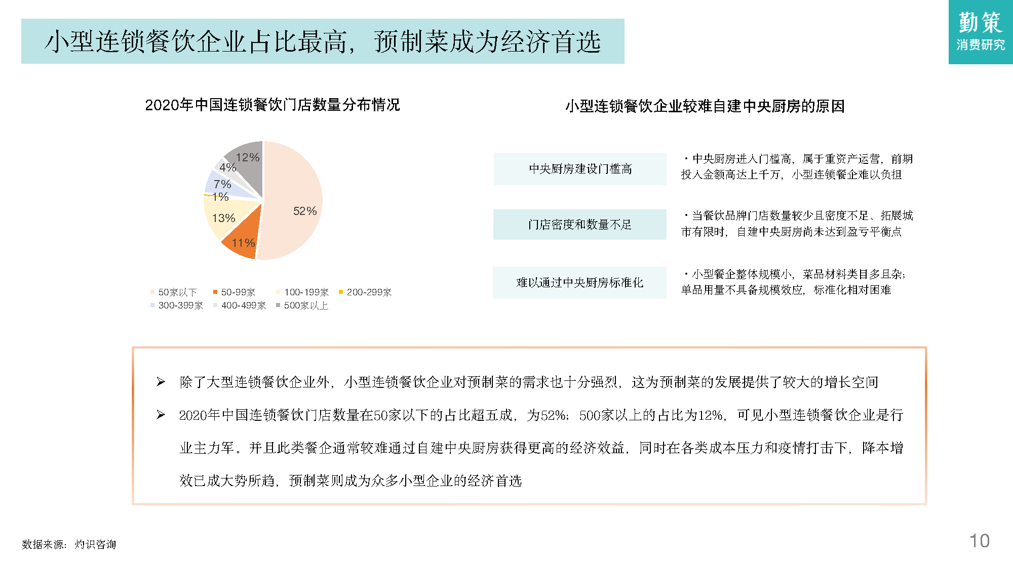 報告顯示,由于小型連鎖餐飲企業在市場上的占比不斷提高,預制菜成為了經濟實惠的首選。這些企業通過采購預制菜降低成本,提高效率,進一步擴大了預制菜的市場規模。
