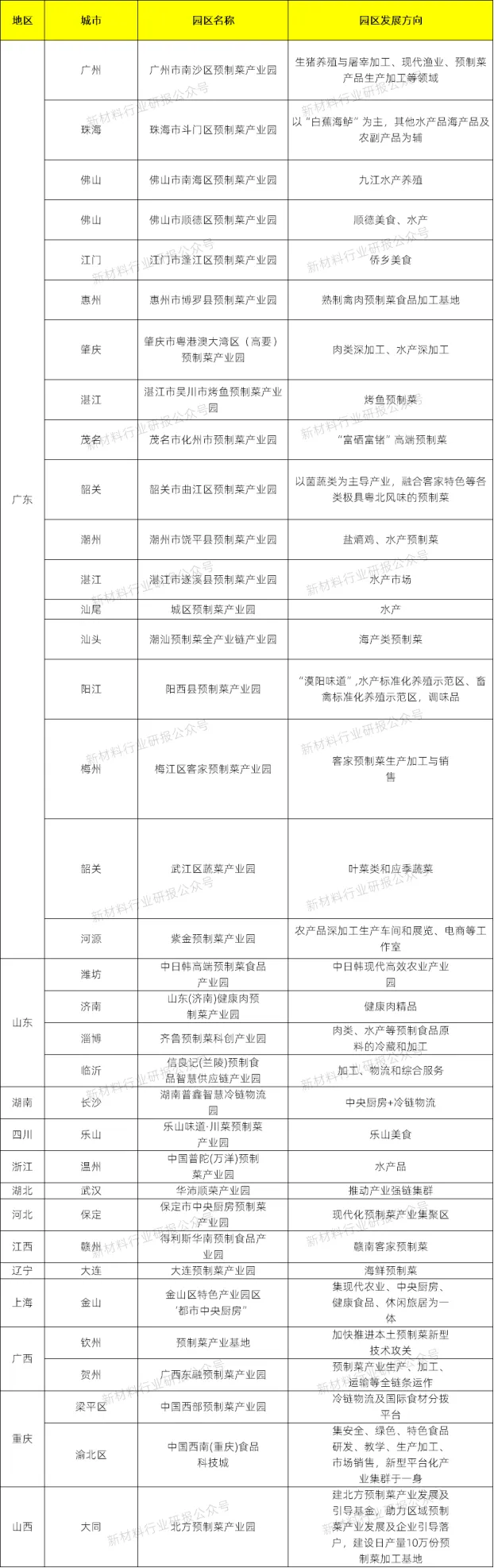 部分省市預制菜產業園分布