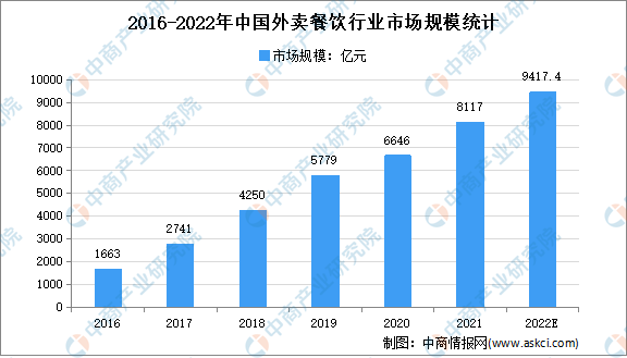 外賣餐飲行業市場規模將達9417.4億元。受益于年輕人的線上消費傾向,中國外賣行業不斷快速增長。2020年中國外賣餐飲市場規模達到6646億元,同比增長15.0%。中商產業研究院預測,2022年中國外賣餐飲行業市場規模將達9417.4億元。