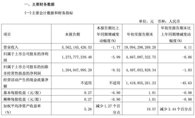 而從前三季度來看,雖然總營收達190.94億元,同比增長6.11%,但凈利潤為46.67億元,下降0.86%。值得注意的是,這是海天味業自2014年上市以來,首次出現三季報中錄得凈利潤下滑。