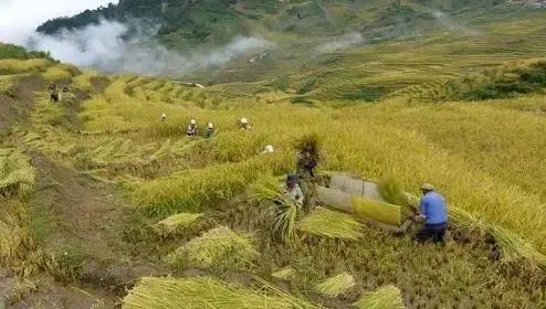 圖為高通與中國扶貧基金會“智慧農業”一期項目試點之一,云南哈尼族彝族自治州紅河縣紅河梯田紅米豐收(受訪者供圖)