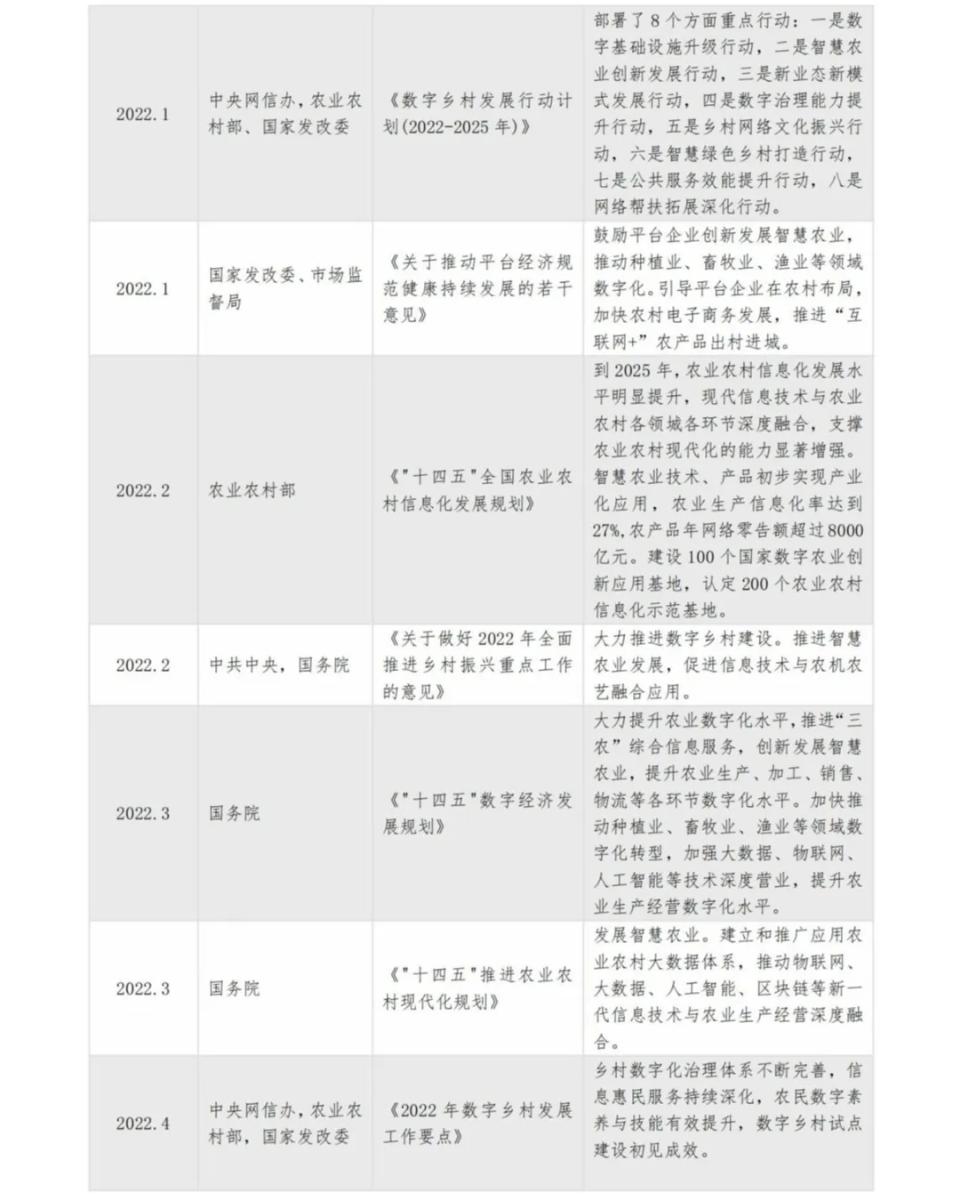 2012年以來 我國中央一號文件智慧農業相關內容歷程