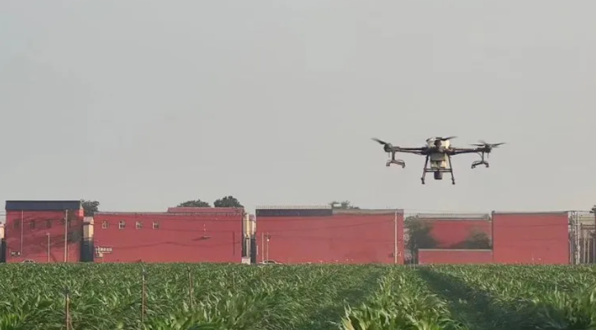 在作物生長期間根據實際情況進行施藥次數,使用自走式噴藥機和無人機智能化進行殺蟲、殺菌、營養調節劑等植保作業。