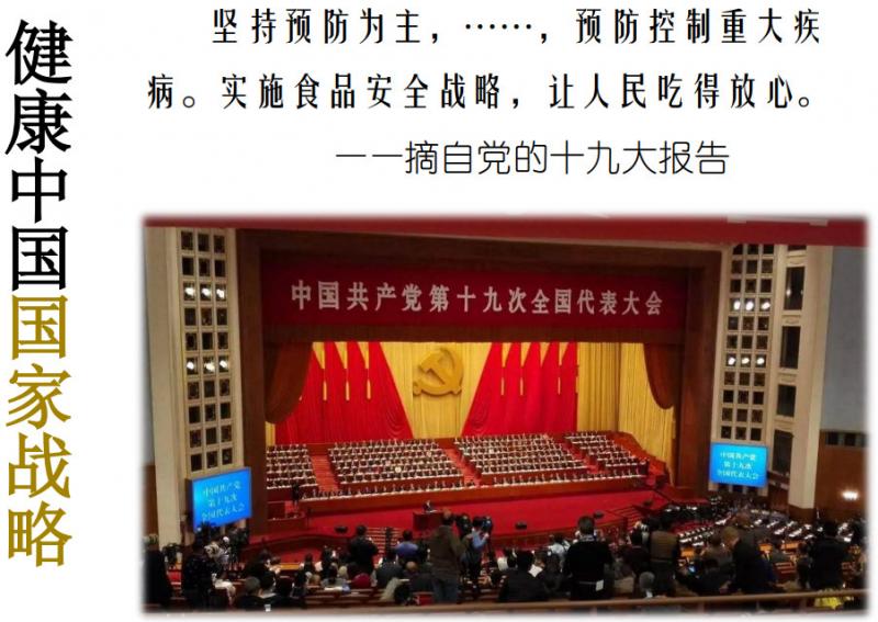 黨的十九大報告提出“堅持預防為主,……,預防控制重大疾病。實施食品安全戰略,讓人民吃得放心。”