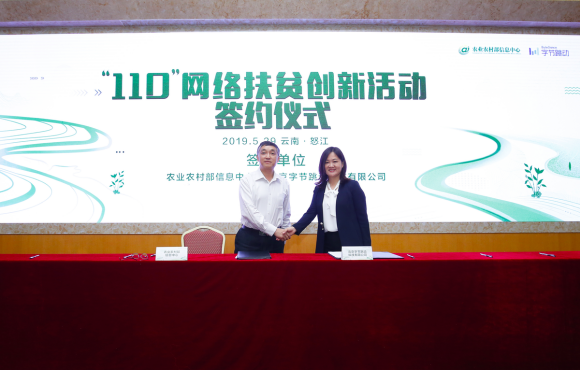 2019年,農(nóng)業(yè)農(nóng)村部信息中心和字節(jié)跳動聯(lián)合開展“110”網(wǎng)絡(luò)扶貧創(chuàng)新活動,計劃幫助全國10個深度貧困縣開展扶貧,輻射帶動100個貧困縣,通過今日頭條、抖音等信息平臺宣傳打造縣域農(nóng)業(yè)品牌,推動貧困地區(qū)縣域農(nóng)業(yè)農(nóng)村經(jīng)濟(jì)發(fā)展。