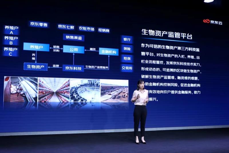 (京東科技農業金融科技部解決方案與產品部負責人趙婕發布京東生物資產監管平臺)
