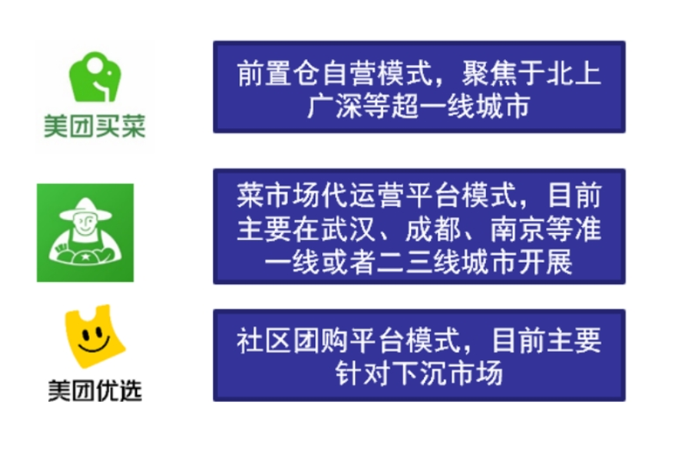 美團CEO王興曾在財報電話會上強調,生鮮零售業務一直以來都是美團具有戰略重要性的新業務領域。同時,美團將生鮮零售劃分為三條業務線,彼此協同管理:“美團買菜”為“前置倉自營模式”,聚焦“北上廣深”等超一線城市;“美團閃購”為“菜市場代運營模式”,專注武漢、成都、南京等準一線或二三線城市;“美團優選”則為“社區團購模式”,主要針對下沉市場。其中,美團優選所在的社區團購賽道已然火熱。面對競爭激烈的市場環境,美團優選也有自己的對敵“三板斧”。