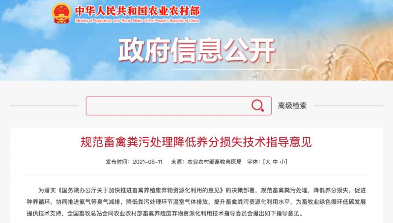近日,農業農村部發布《規范畜禽糞污處理降低養分損失技術指導意見》。