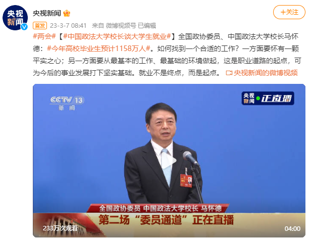 人社部部長王曉萍3月2日表示,2023年,我國高校畢業生將達到1158萬人,同比增加82萬人,招工難、就業難并存的結構性矛盾依然突出。這是在去年高校畢業生數量首破千萬后的又一新高。
