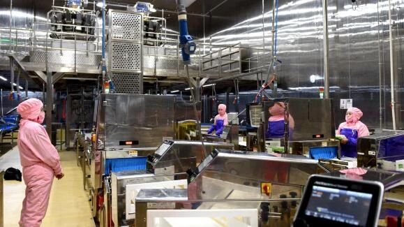 另外,2022年,圣農集團積極擁抱“雙碳”時代,探索低碳發展新路徑,首家智能低碳肉雞加工廠——肉雞加工6廠正式投產。新建2個智能隧道速凍庫,采用制冷劑替代氨制冷,產品自動進出,減少冷氣泄露,采取避峰就谷,凌晨制冷速凍,氨使用量減少90%,能耗下降30%。