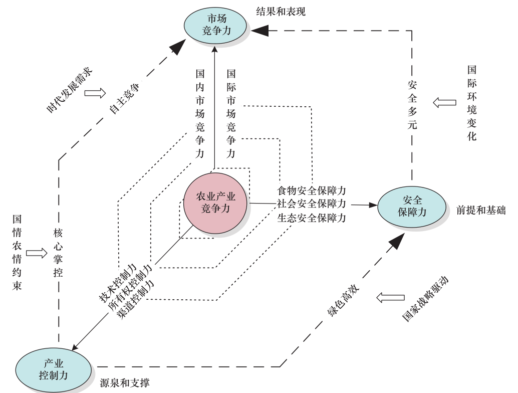 相關主題的已發表文獻較多基于傳統經濟學所倡導的“低成本、差異化”競爭邏輯,構建指標體系并對我國農業產業的市場競爭力進行分析。這屬于相對狹義的范疇,顯然難以滿足我國已進入高質量發展和社會主要矛盾轉型階段的需要,也無法應對外部風險加劇帶來的挑戰。為此,本文在重新審視農業產業競爭力內涵特征的基礎上,提出新階段農業產業競爭力觀,構建新階段農業產業競爭力的評價指標體系并對其進行評價;探討新階段農業產業競爭力的提升路徑和重大舉措,以期為促進農業增效、農民增收與社會穩定,推動農業產業高質量發展提供理論參考。