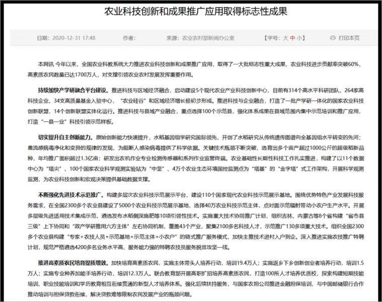 年末農業(yè)農村部對農業(yè)科技創(chuàng)新成果進行了總結,如下圖所示。