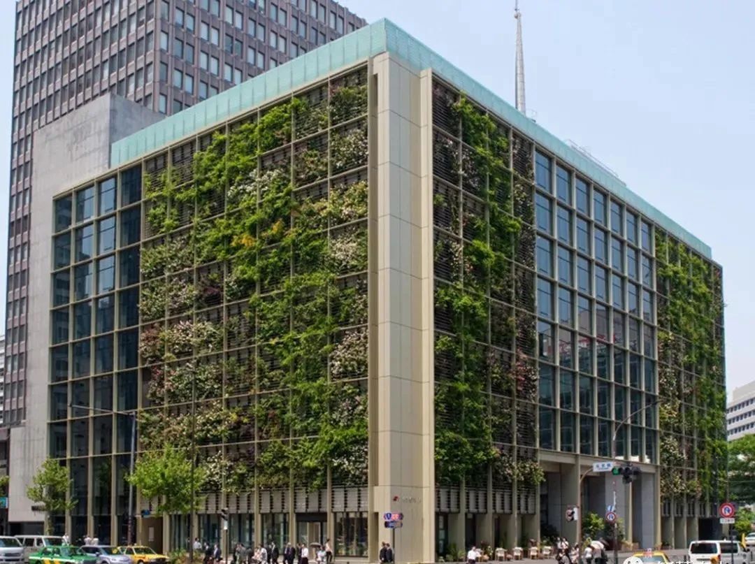 位于東京都千代田區大手町的Pasona總部公司,是一棟九層高,215,000平方英尺的企業辦公樓,但不同于其他寫字樓的玻璃幕墻,Pasona的外層被“植物窗簾”包裹著。