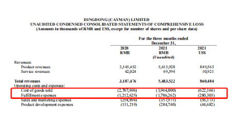 和不少生鮮電商平臺一樣,叮咚買菜也深陷“增收不增利”的泥潭,公司2021年全年虧損高達64.29億元,同比下降102.36%,上市以來虧損超110億元。