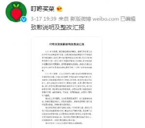 叮咚買菜也在微博上發布致歉說明及整改匯報,并表示:“歡迎消費者、媒體和監管部門前往我司前置倉檢查,并隨時提出改進意見。”但受該新聞的影響,叮咚買菜當晚美股盤前跌幅依然達到22.4%。