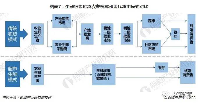 傳統農貿模式的流通環節過于繁復,而超市生鮮銷售模式具有直采直營、流通環節少、保證生鮮產品質量和安全等諸多優點,能從規模化采購、運輸設備、冷藏設備等領域提升產業鏈效率。