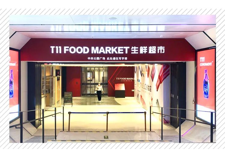 2019年6月6日,籌備已久的T11生鮮超市首店,在北京朝陽公園正式開門營業。店面約4000-5000平方米,主要銷售生鮮、日用品、熟食、餐飲等。無論從門店調性、空間和功能布局,還是從商品內容方面來看,這家門店都很像7FRESH的升級版。