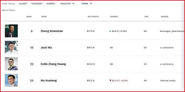 值得注意的是,排在鐘睒睒之前的便是股神巴菲特。此外,在中國富豪榜子榜上,鐘睒睒領先排名第二的馬云(實時財富573億美元)近200億美元。