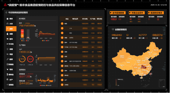 首農食品集團疫情防控與供應保障數據看板(數據已脫敏)