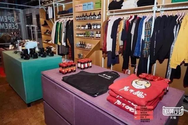 另外,緊接著9月9日至9月11日,天貓國(guó)潮行動(dòng)聯(lián)合全球頂尖潮流買(mǎi)手店Opening Ceremoney 打造了中國(guó)日“天貓國(guó)潮廠牌店”,目的是為一系列獨(dú)居中國(guó)文化基因的品牌定制潮流跨界單品。其中入駐品牌最引人矚目的非“老干媽”莫屬。