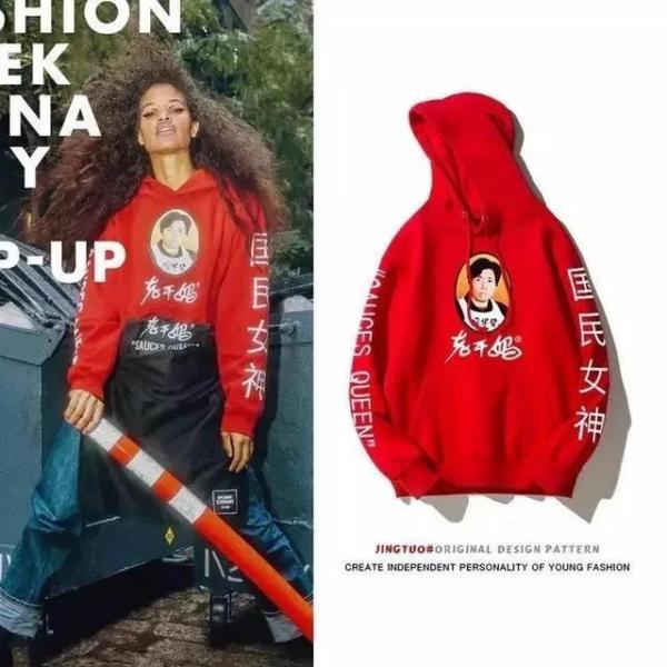 現(xiàn)在的“老干媽”,已不再是一瓶簡(jiǎn)單的辣醬,成為了國(guó)潮時(shí)尚的代表,甚至在海外成了“奢侈品”。2018年9月10日,在紐約時(shí)裝周聯(lián)合Opening Ceremony推出 Logo衛(wèi)衣。