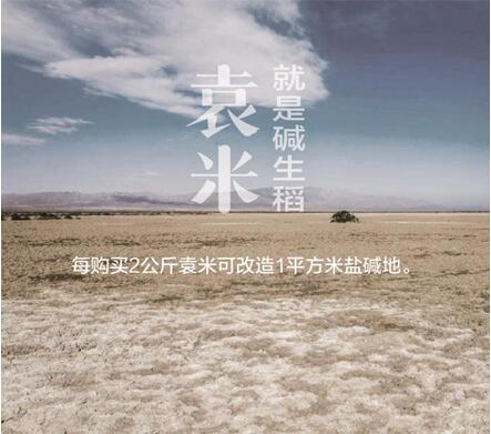 在天貓618期間,袁策天貓店內還打出了一個口號:每購買一公斤大米,可參與改造兩平方米鹽堿地。